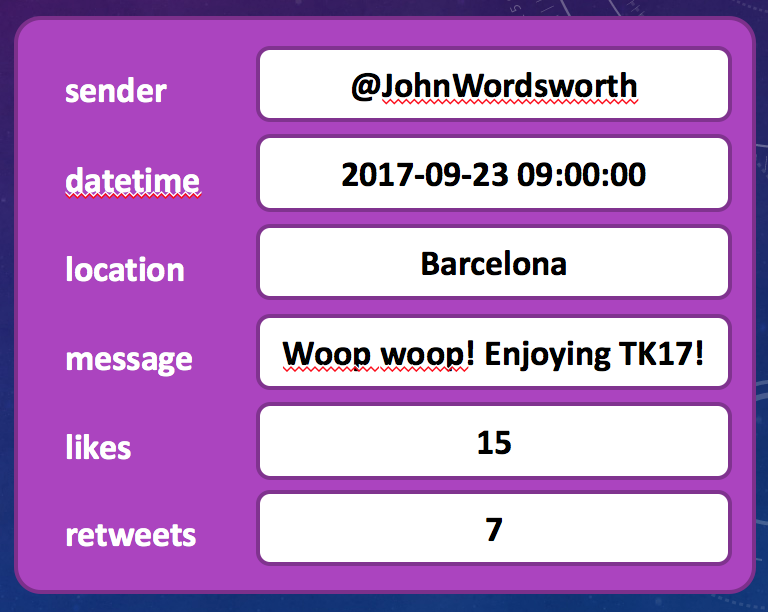 The following example shows how you might use an object to represent a single Tweet in a Twitter client;